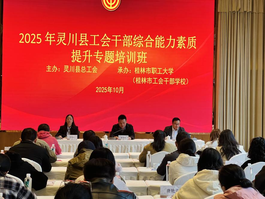 2025年10月22日至24日,由灵川县总工会主办、我校精心承办的“2025年灵川县工会干部综合能力素质提升专题培训班”在全州县圆满落幕。桂林市职工大学党支部书记、校长蒋大为,灵川县总工会党组书记、副主席蒋永威出席开班仪式并致辞,来自灵川县总工会“三委委员”及原产改协调小组相关成员单位的71名工会干部齐聚一堂,共同参与此次提升培训。