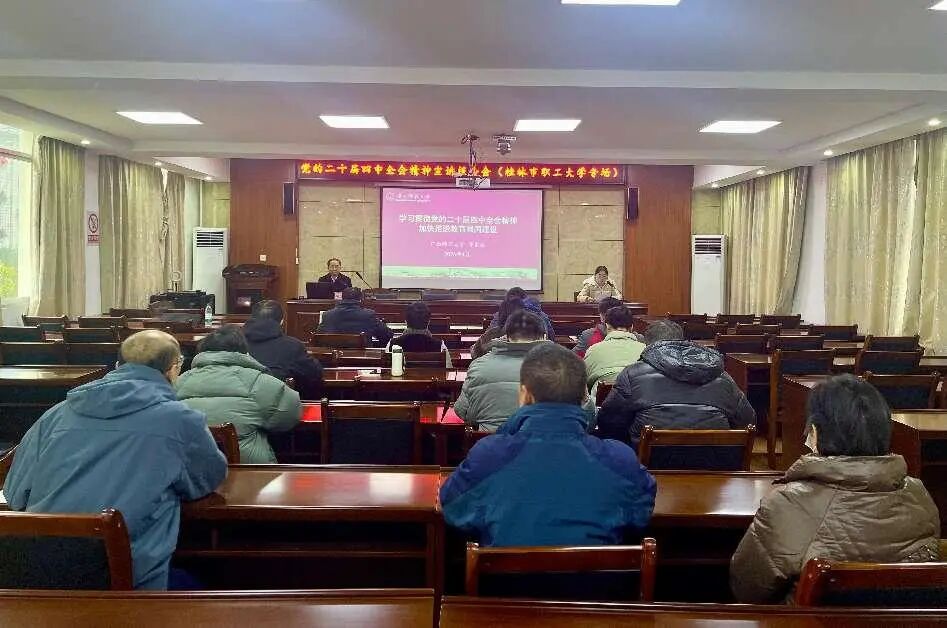 为深入学习贯彻党的二十届四中全会精神,引导全校教职工切实把思想和行动统一到党中央决策部署上来,12月26日,桂林市职工大学举办党的二十届四中全会精神专题宣讲报告会,报告会邀请广西师范大学图书馆馆长、自治区党委讲师团特聘教授陈宗波作专题辅导,学校全体教职工及党员干部参加学习。